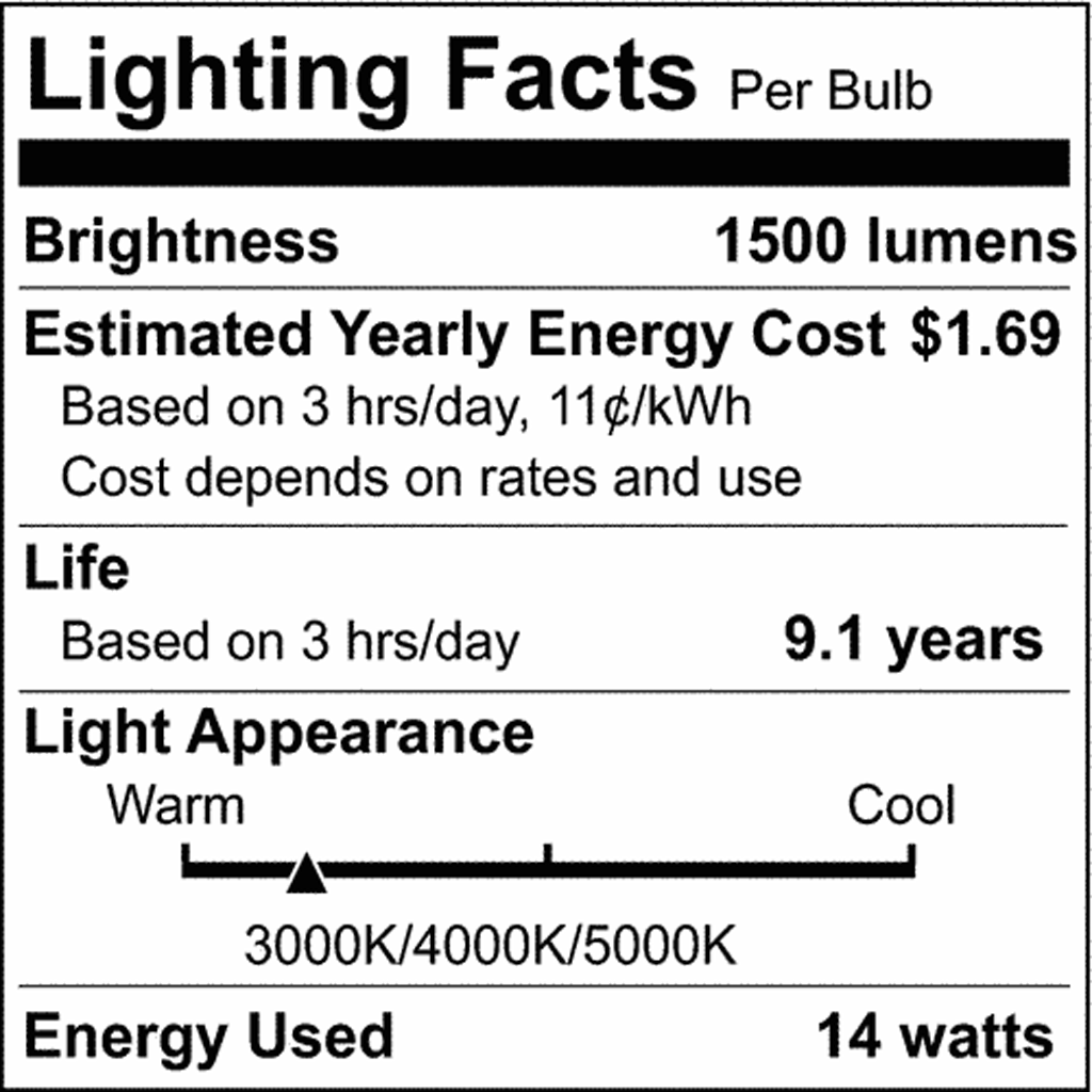 Features:- Watts: 14W, Incandescent Equivalent: 100W