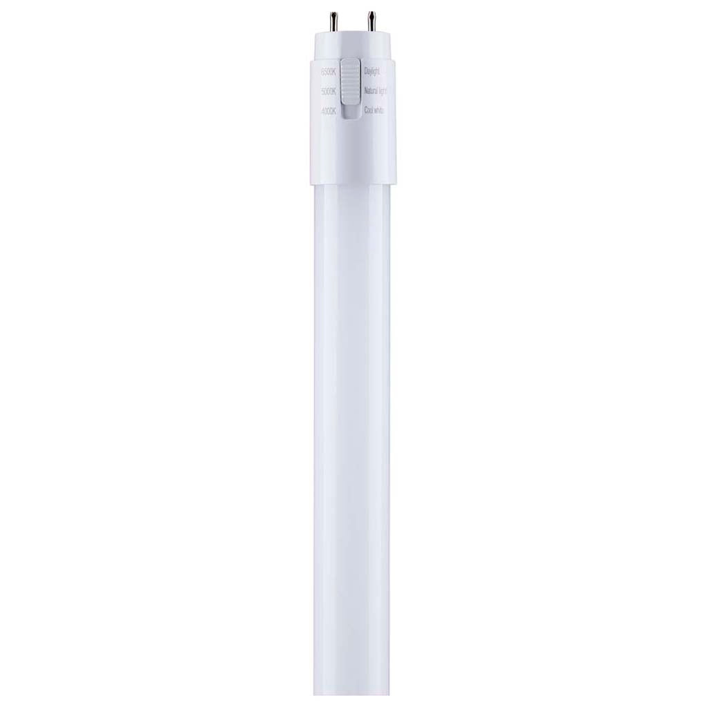 Satco 10 pack of 12.5 watt T8 4 foot LED G13 Type A ballast dependent CCT selectable double ended linear direct replacement bulbs with two installation options offers stock saving options in a versatile retrofit. The frosted white bulb features a Medium Bi Pin base delivering exceptional illumination. With its high lumen output providing up to 50,000 hours of light, this lamp is perfect for retail, hospitality, restaurant, and warehouse applications.Features: