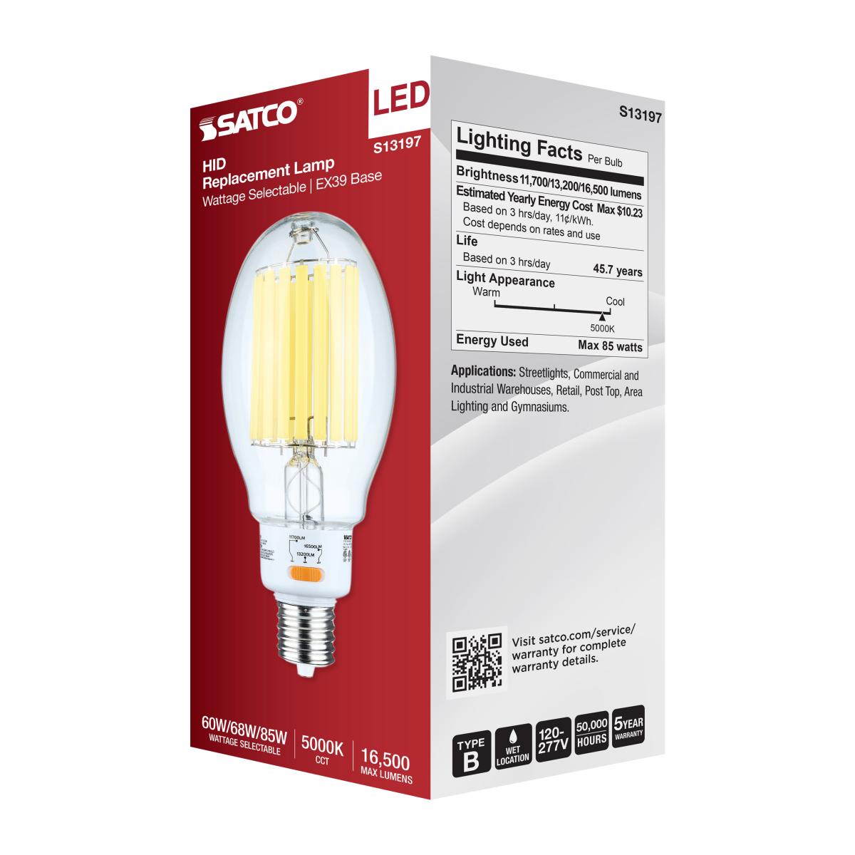 Satco LED HID Replacement ED37 Wattage Tunable 5000K EX39 Base 120-277v Bulb