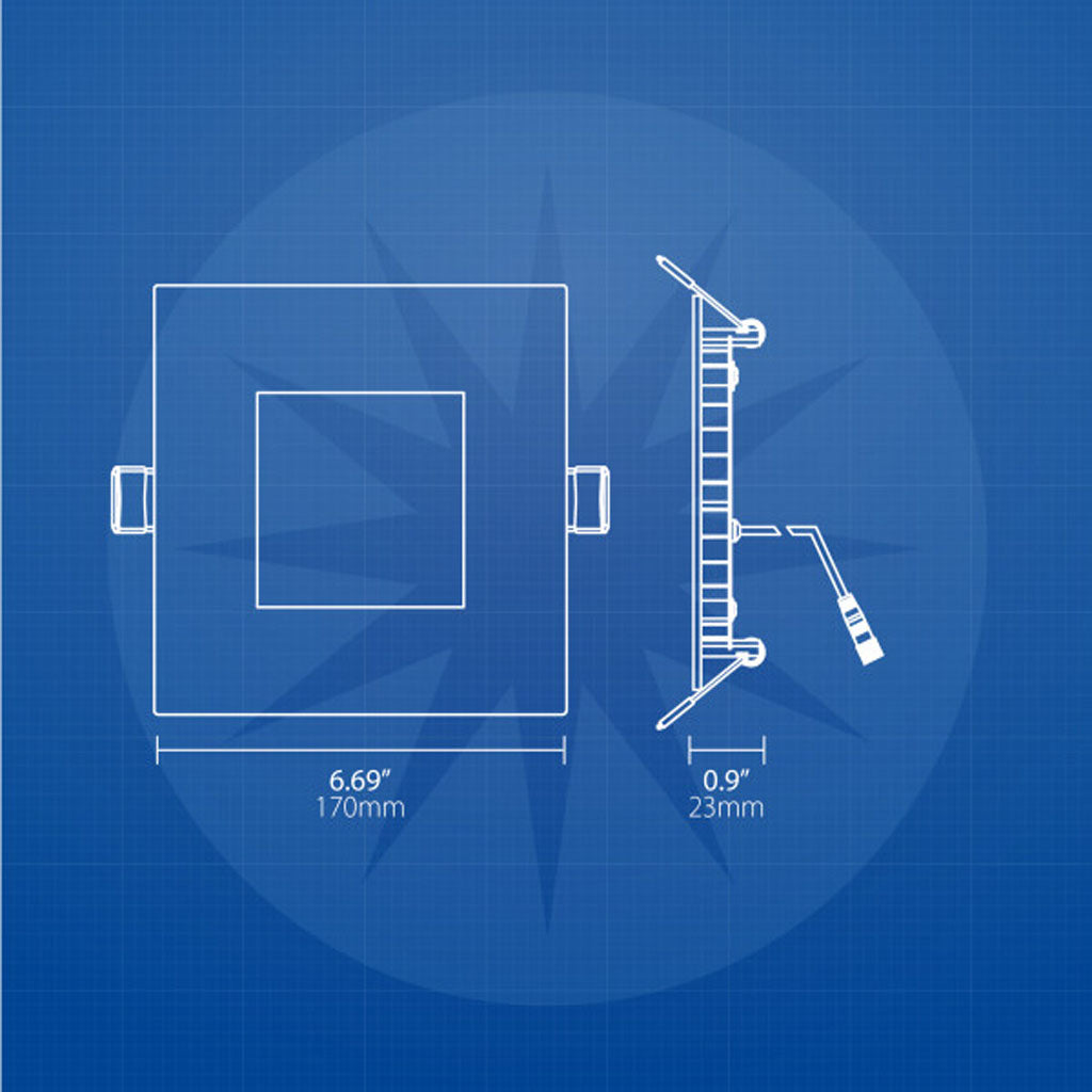 NICOR REL Series 6-in Selectable CCT Square Canless LED Downlight offers a clean and attractive aesthetic with a low-profile. The edge-lit technology allows for a very thin recessed design measuring less than an inch in depth. Easily change between 5 color temperature options (2700K, 3000K, 3500K, 4000K, 5000K) with the CCT selector switch on the driver. The high-performance REL Fixture features an impressive 93 CRI rating (R9 >50) to produce an incredible light output quality. Installation no longer requires a recessed housing, but rather a simple 6.25-in diameter drywall cut-out using the provided template. The ultra-thin fixture depth and off-board driver (included) allows for a more flexible installation and increased product lifespan through superior heat management. The adjustable, spring-loaded retention tabs provide a secure fit, eliminating the need for a junction box or recessed housing. The REL comes ready to install right out of the box, no other parts or components are required. Protected by NICOR 5-year limited warranty.
