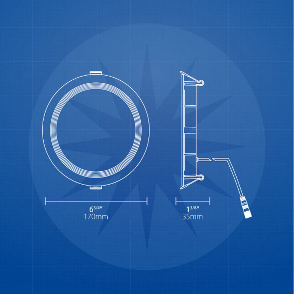 NICOR RELS-R Series 6-in Regressed LED Downlight offers an inset baffle design to bring depth and clean aesthetic to any room. The edge-lit technology allows for a very thin recessed design measuring less than an inch in depth. Easily change between 5 color temperature options (2700K, 3000K, 3500K, 4000K, 5000K) with the CCT selector switch on the driver. The high-performance RELS-R features an impressive 93 CRI rating (with an R9 value of 56) to produce an incredible light output quality. Installation no longer requires a recessed housing, but rather a simple 6.25-in diameter drywall cut-out using the provided template. The ultra-thin fixture depth and off-board driver (included) allows for a more flexible installation and increased product lifespan through superior heat management. The adjustable, spring-loaded retention tabs provide a secure fit, eliminating the need for a junction box or recessed housing. The REL comes ready to install right out of the box, no other parts or components are required. Available in round and square, in both 4-in and 6-in sizes. Protected by NICOR 5-year limited warranty.