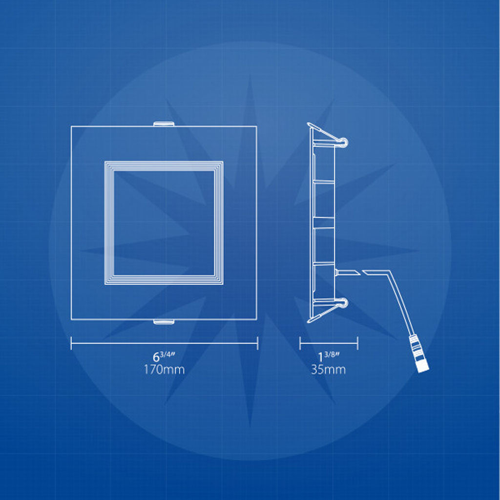 NICOR RELS-R Series 6-in Square Regressed LED Downlight offers an inset baffle design to bring depth and clean aesthetic to any room. The edge-lit technology allows for a very thin recessed design measuring less than an inch in depth. Easily change between 5 color temperature options (2700K, 3000K, 3500K, 4000K, 5000K) with the CCT selector switch on the driver. The high-performance RELS-R features an impressive 93 CRI rating (with an R9 value of 59) to produce an incredible light output quality. Installation no longer requires a recessed housing, but rather a simple 6.25-in diameter drywall cut-out using the provided template. The ultra-thin fixture depth and off-board driver (included) allows for a more flexible installation and increased product lifespan through superior heat management. The adjustable, spring-loaded retention tabs provide a secure fit, eliminating the need for a junction box or recessed housing. The REL comes ready to install right out of the box, no other parts or components are required. Available in round and square, in both 4-in and 6-in sizes. Protected by NICOR 5-year limited warranty.