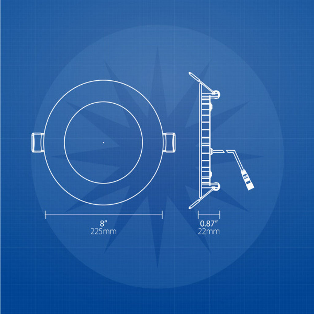 NICOR REL Series 8-in Canless LED Downlight offers a clean and attractive aesthetic with a low-profile. The edge-lit technology allows for a very thin recessed design measuring less than an inch in depth. The high-performance REL features an impressive 93 CRI rating (R9 >50) to produce an incredible light output quality. Installation no longer requires a recessed housing, but rather a simple 8.17-in diameter drywall cut-out using the provided template. The ultra-thin fixture depth and off-board driver (included) allows for a more flexible installation and increased product lifespan through superior heat management. The adjustable, spring-loaded retention tabs provide a secure fit, eliminating the need for a junction box or recessed housing. The REL comes ready to install right out of the box, no other parts or components are required. Choose between four different color temperature options: 2700K, 3000K, 4000K, and 5000K. Protected by NICOR 5-year limited warranty.