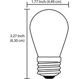 Sunlite’s S14 bulb will bring a vintage feel to your indoor or outdoor space. It is ideal for patio or garden string lights, sign lighting, vanity lighting and other decorative fixtures. It delivers a bright light while still gentle on the eye. It is perfect for string lights or in any other exposed application. Its durable colored housing produces a beautiful glow and creates a festive atmosphere. This 11 watt (80 Lumen) energy saving bulb has a super low energy cost of $1.32 per year. Its long lamp life of 2,000 hours will last 1.8 years (based on 3 hour per day use). This general use bulb fits into standard medium (E26) bases. It is ETL listed for damp locations.