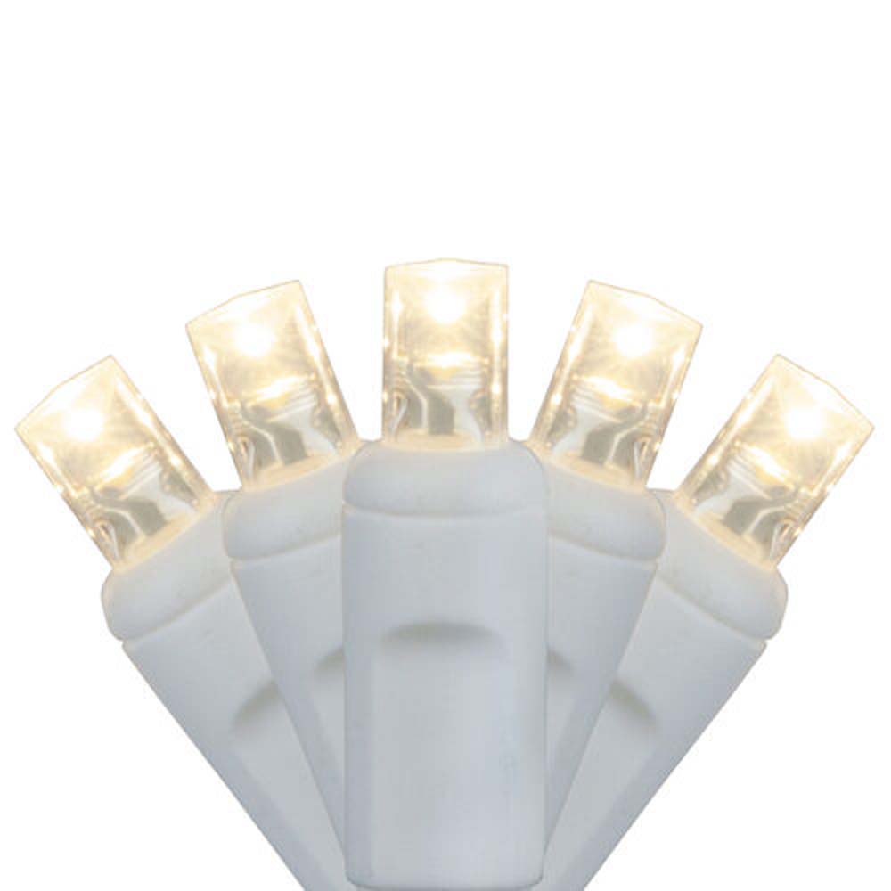 15 Warm White 5mm LED Christmas Lights, White Wire, 4" Spacing