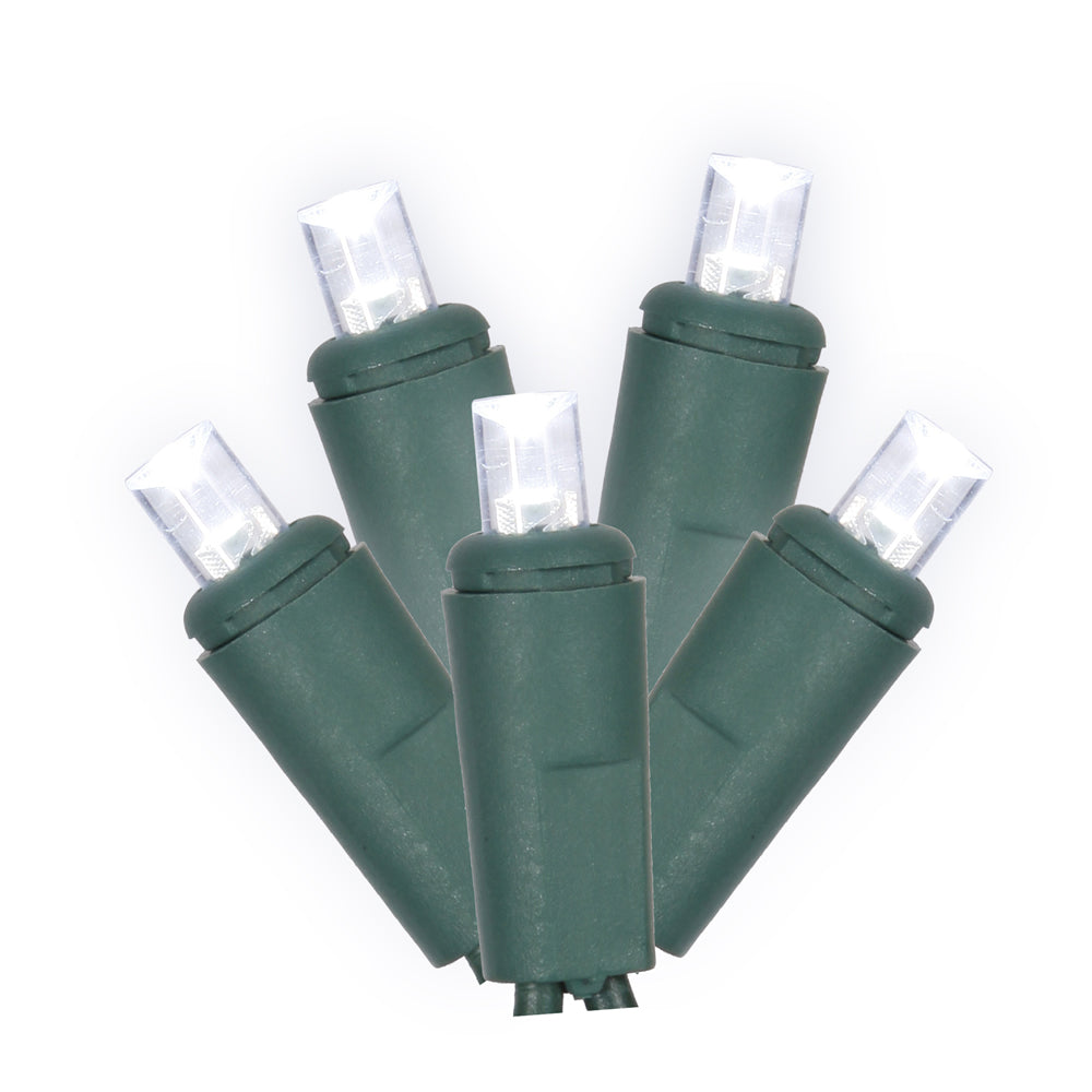 Vickerman 200 Cool White Wide Angle LED Light on Green Wire, 100' Christmas Light Strand