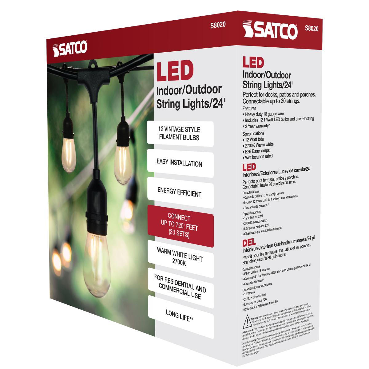 Satco S8020 is a 24-ft LED decorative string light, which can transform any space into a stylish evening experience. Comes with 12 energy efficient, vintage style LED lamps which deliver a perfect warm glow. Heavy duty wire, easy installation, and their classic look, all combine to make this the set of choice among outdoor enthusiasts everywhere.