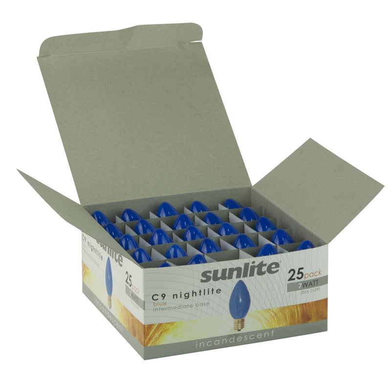 25Pk - SUNLITE Blue 7w C9 E17 Intermediate Base Light Bulb
