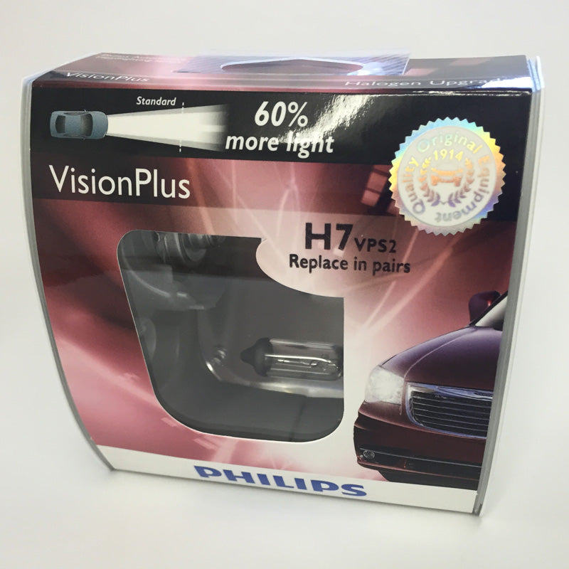 Philips H7 12972 VISION PLUS automotive Low and High beam headlamp and foglamp delivers up to 60-Feet Longer Beam and 60% More Light for Better Reaction Time and Improve Nighttime Driving Safety.