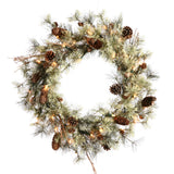 30" Dakota Wreath - Pine Cones and 50 Warm White LED Lights - 112 Tips