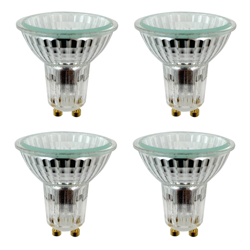 4pk - 50w MR16 GU10 Flood 2950K halogen light bulb with front glass