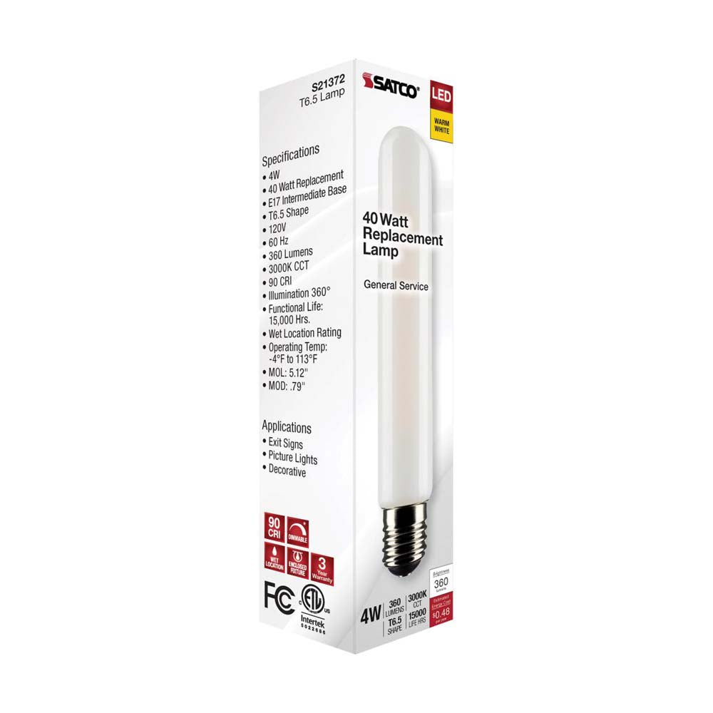 4W T6.5 LED Frosted Intermediate Base 3000K 360 Lumens 120v