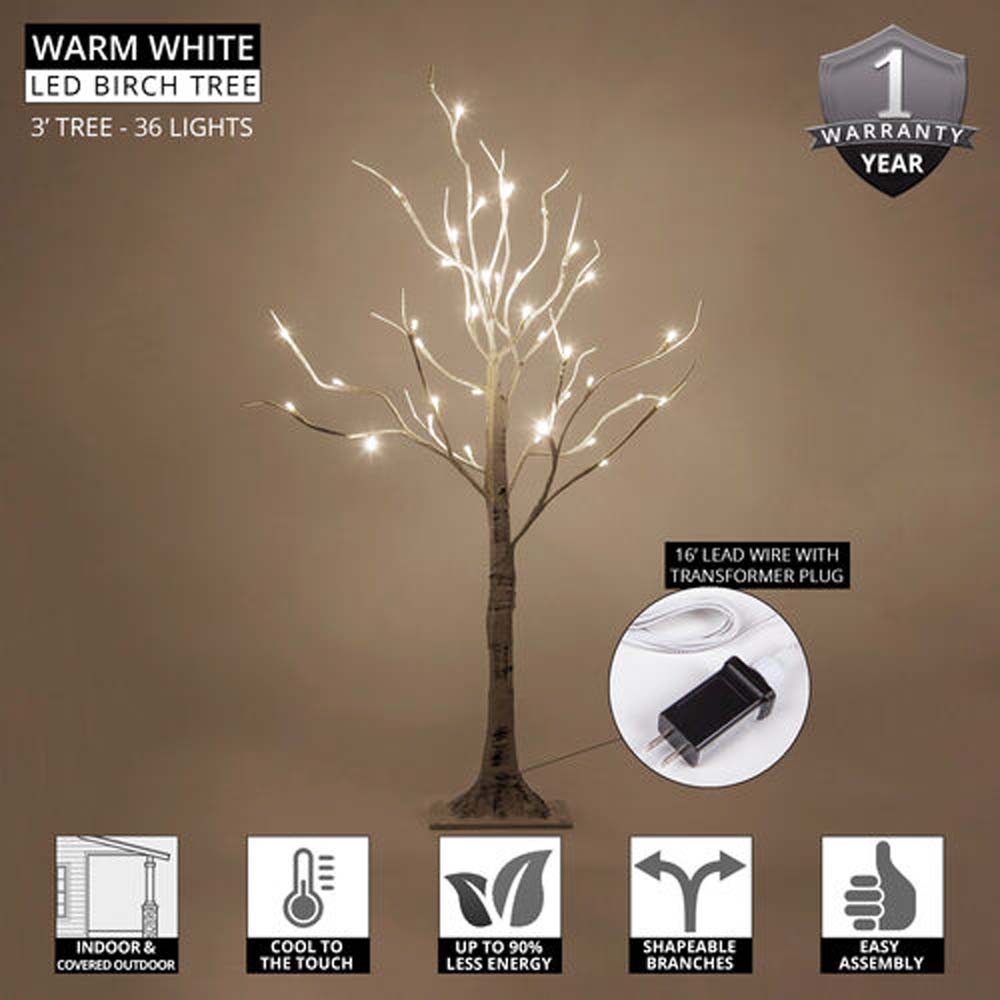 Features:- 5-ft. birch tree with 36 warm white LED lights