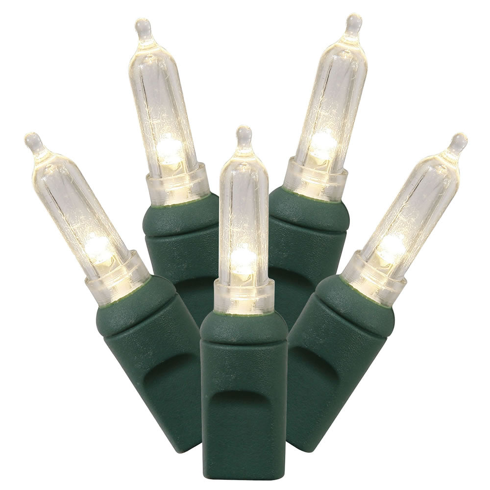 50Lt LED Warm White / Green Wire, Italian Single Mold, End Connecting Set, Up to 43 connecting sets, 4.8watts .04Amps, 6" Spacing, Total length 25', Poly Bag w/ Header Card
