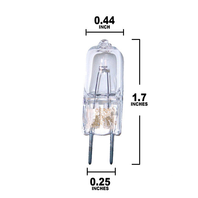 Bulbamerica 50 watts and 12 volts. The Halogen light bulb has a G6.35 Bipin base with a rated life of 1100 hours.