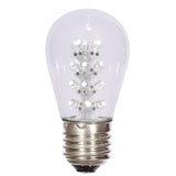 Vickerman S14 Warm White LED Transparent 1.3 Watts, 130V, E26 Medium Nickel Base Bulb, very high value, guaranteed 25000 hrs, inside painted bulbs, 25-26 Lumens., 5 per pack