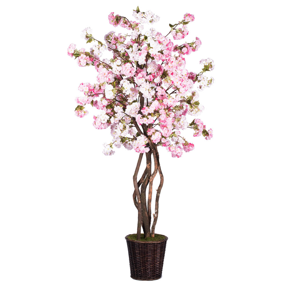 6' Pink Cherry Blossom Deluxe with real Tag Alder trunks in Rattan Container and American made excelsior