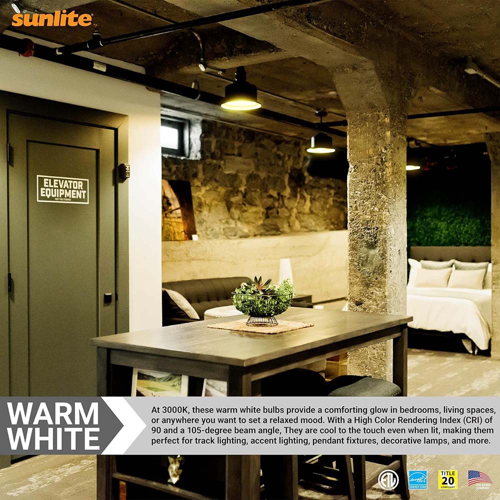 - WARM WHITE - At 3000K these warm white bulbs provide a comforting glow in bedrooms, living spaces or anywhere you want to set relaxed mood. 1150 lumen output and 105-degree beam angle.