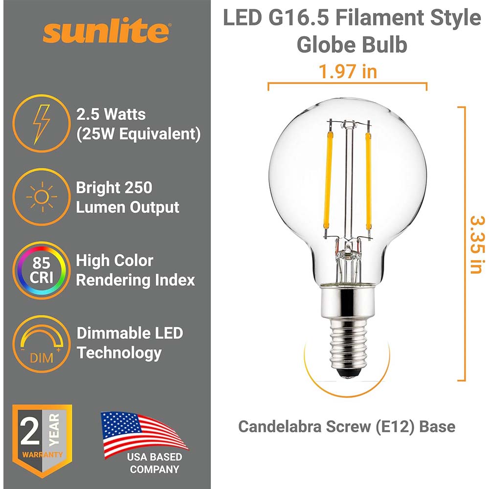 6Pk - Sunlite 2.5w LED G16.5 Globe E12 Base 3000K Bulb - 25W Equiv