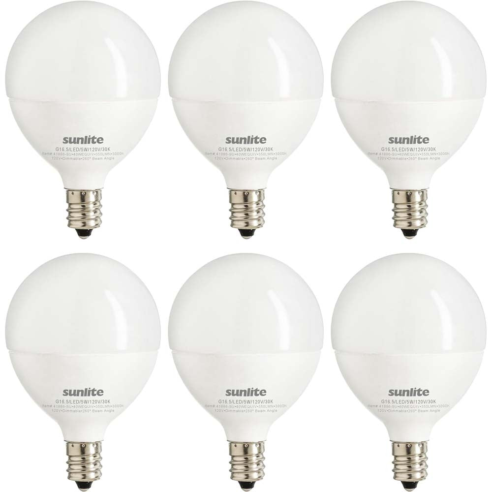 6Pk - Sunlite 5w LED G16.5 Frosted Globe E12 Base 3000K Bulb - 40W Equiv