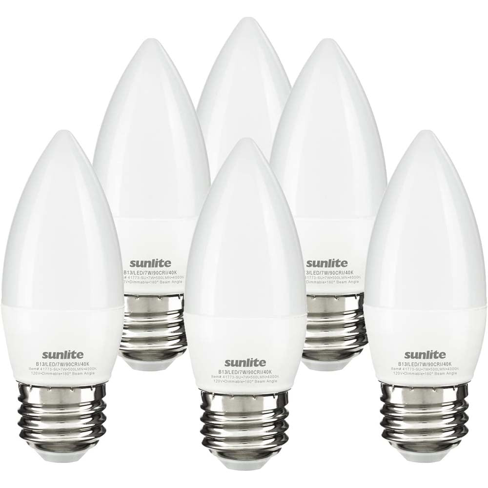6Pk - Sunlite 7w LED B13 Decorative Chandelier E26 4000K Bulb - 60W Equiv