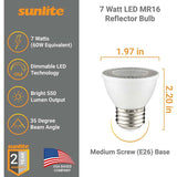 6Pk - Sunlite 7w LED PAR16 Short Neck E26 Base 5000K Bulb - 50W Equiv