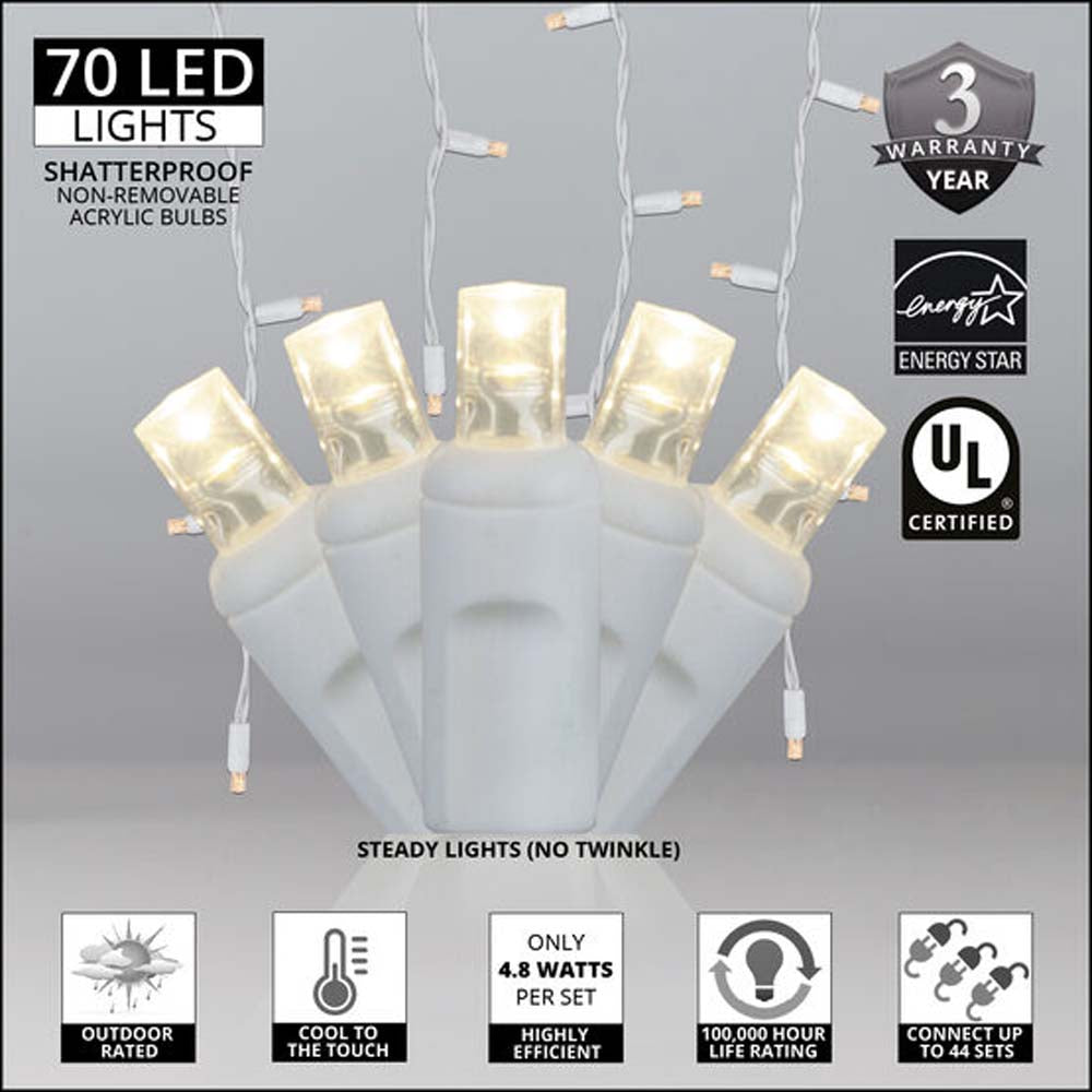70 Warm White 5mm LED Icicle Light Set with White Wire