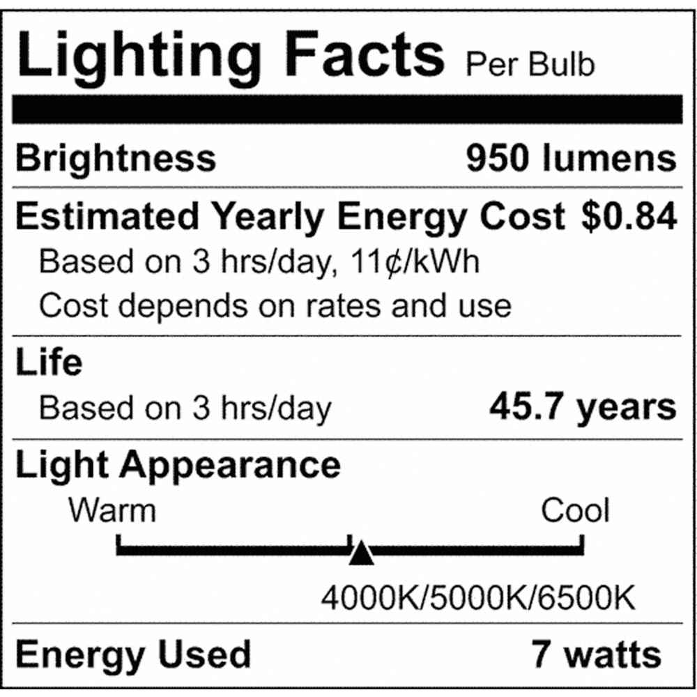 - CRI: 83, Lumens: 950L, 1000L, 900L