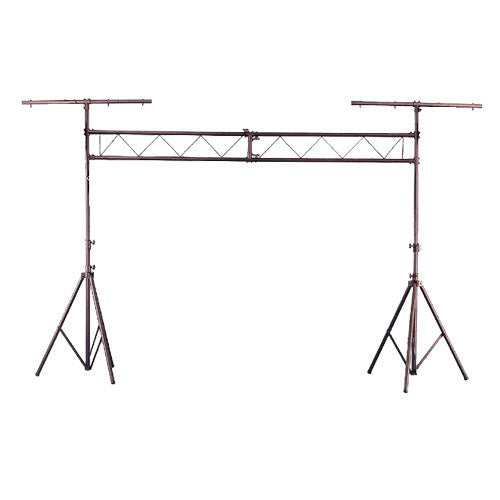 Ideal for portable light shows, this sturdy, easy-to-setup trussing system comes complete with two black anodized aluminum tripods that telescope to nine feet. Also included are two five-foot truss I-beams that lock together to create a 10-foot span. Comes with two T-bars for use with or without the truss. The LTS31 may also be used to fly lightweight speaker cabinets overhead for better high-frequency coverage. Optima Professional LTS31 Parts: - 2 x T-Bars - 4 x Side Mount T-Collars - 1 x Center "I" Support Bar - 2 x Center Posts for Tri-Pod Stands - 2 x 5' Truss I-Beam Sections w/Spigot - 2 x 9' Tri-Pod Stands - 6 x Safety Pins - 1 Hexagon Allen Wrench (Inserted in 5' Truss End)Specifications: - Aluminum Diameter: 1 1/2"