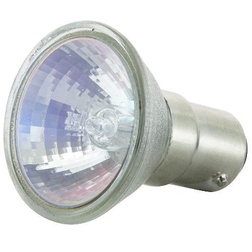 BulbAmerica 20W 12V MR11 GU4 Bipin Base Flood 36 Mini Reflector Bulb. This 20 watt, GU4 based, MR11 mini reflector bulb offers a light output of 2500 CBCP, and has an average rated life of 2,000 hours. Great for portable lamps, ceiling fixtures, track lighting, showcase displays and most common residential and commercial lighting needs. Halogen bulbs produce more lumens per watt (LPW) and have a longer lamp life than standard incandescent lamps. You can lower operation costs by more than 30% by using fewer halogen lamps to produce a greater amount of light.