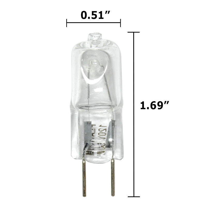 This BulbAmerica 50W 120V GY8 Bi-Pin Base Clear Halogen Bulb has many different applications. This bulb consumes 50 watts 120 volts. It has a maximum overall length of 1.38 inches. This bulb is most common for use in Residential Lamps, Desk lamps, Hanging Lights, microscope, medical, ophthalmic, microfilm, projectors, and effect lighting. It is extremely small but highly effective.