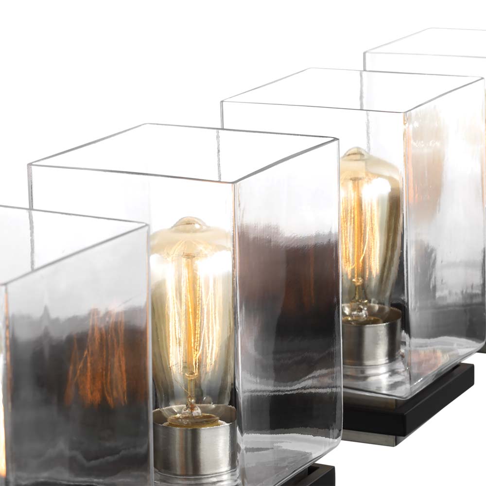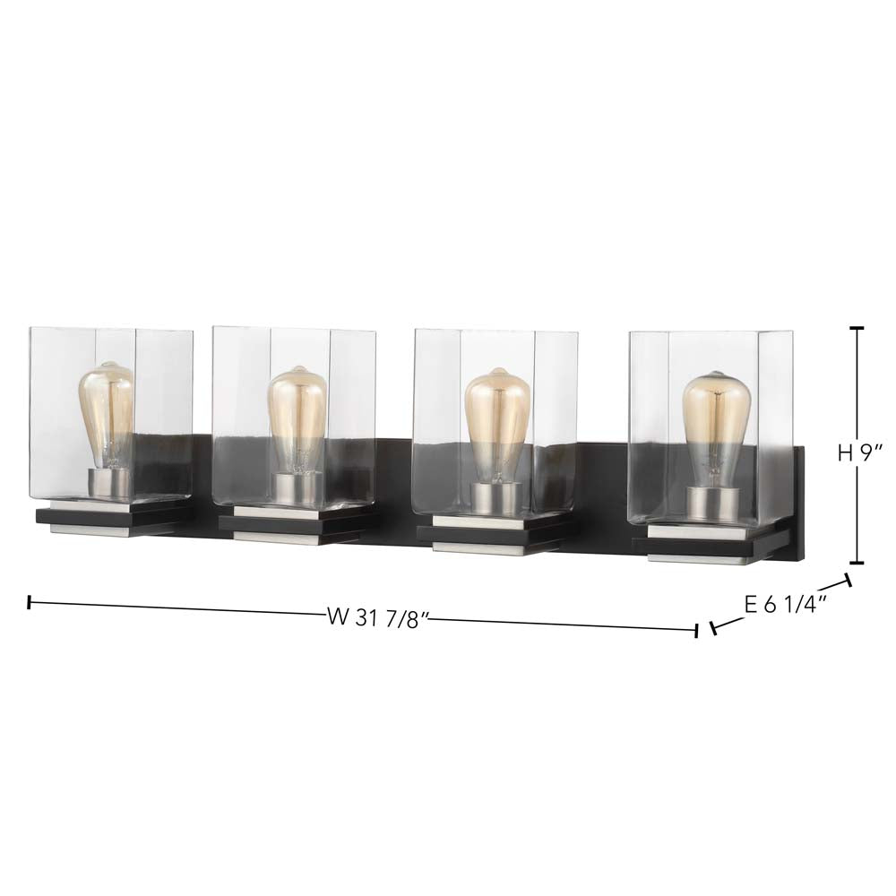 A combination of glass and metal comes together to create the stunning design of the Crossroad 60-7654 vanity light. The square, clear glass shades showcase the bulbs. The sockets and base are finished in brushed nickel to contrast beautifully with the matte black finish. Bring stylish, contemporary flair to your bath or powder room, or spruce up a tired entry way. The applications are boundless