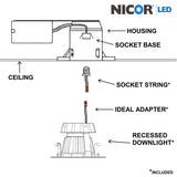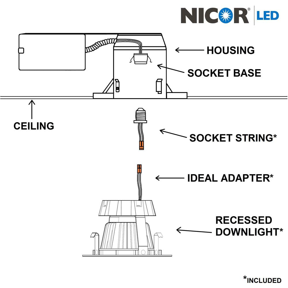 The DCG4 LED Gimbal Downlight is an economical, easy-to-install retrofit that is perfect for upgrading to LED lighting from incandescent of fluorescent lighting. The easy twist-and-tilt directional lighting system allows for 360 deg. rotation and 35 deg. tilt to highlight artwork or architectural design features in your home. The DCG4 provides an energy efficient solution, designed to create an attractive visual aesthetic that incredibly easy to install. The DCG4 is Dimmable (down to 5%) and features a 93 CRI rating, with an R9 value of 59, making it a contender among the highest quality light fixtures on the market. The DCG4 features spring-loaded retention tabs for a secure fit into any 4-inch recessed housing. Installs using an Edison base adapter or quick-connect (orange) cable, both of which are included. Choose from 2700K, 3000K, 4000K, or 5000K Color Temperatures. The DCG4 is Energy Star rated, Title 24 compliant, Damp-Location rated, and protected by NICOR 5-Year Limited Warranty.