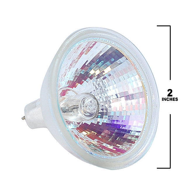 50W 12V Tungsten Halogen, MR16, Axial Filament, Dichroic Reflector with Front Glass, GU5.3 Bi-Pin Base Narrow Spot Beam (EXT)