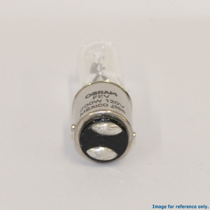 OSRAM FEV 200w 120v BA15d Double Contact Bayonet base Halogen light BulbOSRAM 54441, or FEV lamp, is commonly used in stage & studio applications. It can be used in any operating position and features superior color rendering to cast whatever you are illuminating in the optimal light. The FEV lamp can be used in stage & studio fixtures that use appropriate wattage, voltage, and are compatible with BA15d Double Contact Bayonet bases.