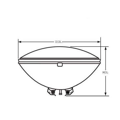 This bulb is FAA approved and OAL is 5" and OD is 7". Life is 500 hours. The nominal light output is 29000 at center. This Par 56 is shatter shield coated.