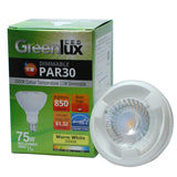 GreenLux High Quality PAR30L LED uses only 11 watts to produce 850 Lumens - equivalent to 75 Watt.The PAR30L LED bulbs emit 3000k - warm white color temperature for brilliant ambiance.The innovative special design uses a lens with multiple integrated reflectors to optimize beam distribution creating a soft pleasant light with low glare.