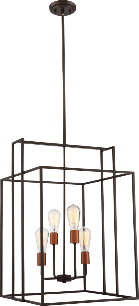 Lake 4-Light Pendant Light Fixture in Bronze with Copper Accents Finish