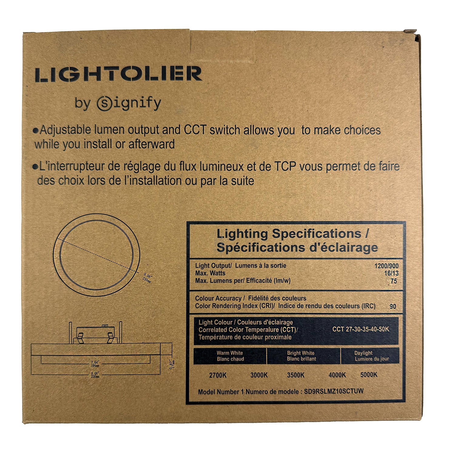 Lightolier LED Surface Mount Downlight dual select downlight is a perfect problem solver fixture. When you are faced with a challenging ceiling, but want a nice LED downlight, this is the perfect product for you. The CCT and Lumen selection features make it easy to adjust at the time of installation.