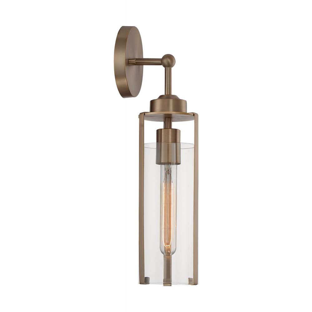 Marina Wall Sconce Fixture Burnished Brass Finish w/ Clear Glass 120v