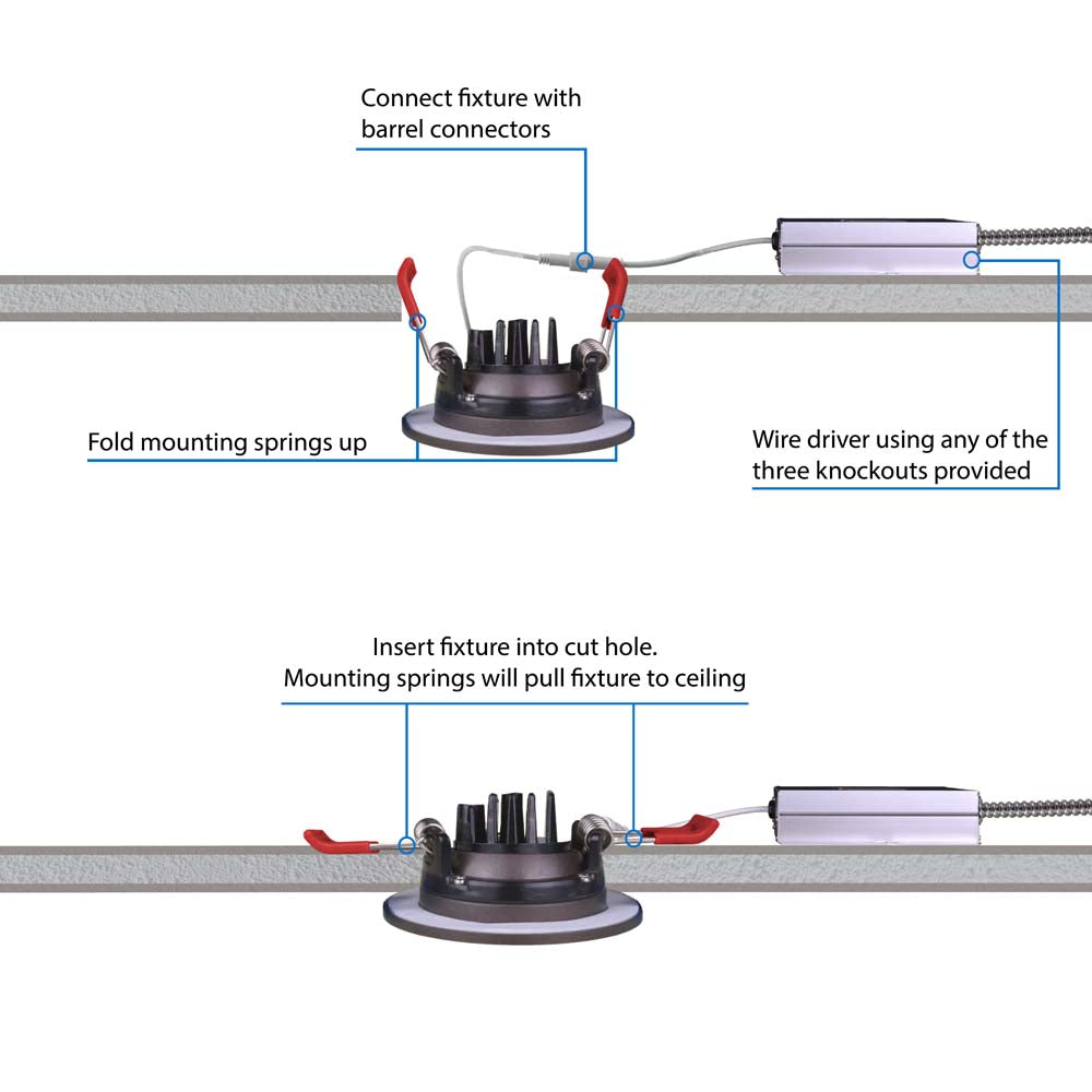 - Includes LED downlight module, plenum-rated cable, and off-board LED driver