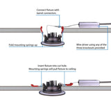 The DGD2 LED Downlight Gimbal features the latest in performance LED Downlight technology, designed to create an attractive visual aesthetic that's incredibly easy to install. The high-performance DGD2 is Dimmable and features a 90 CRI rating, with an R9 value exceeding 50, making it one of the highest quality light fixtures on the market. Installation does NOT require a recessed housing or junction box, only a simple 2.125-inch diameter cut-out in the ceiling using the provided template. The elegantly designed fixture and off-board driver (included) allows for a more flexible installation and an increased lifespan thanks to the superior heat management system separated from the LED module itself. The DGD2 features adjustable spring-loaded retention tabs for a secure fit, eliminating the need for a recessed housing or junction box. Adding an adjustable, multi-directional light system to highlight artwork or architectural design features in your home just got easier. Freedom from having to use a housing or junction box allows this light to be installed in places others simply cannot. Available in Black, Nickel, Oil-Rubbed Bronze, and White. Choose from 2700K, 3000K, 4000K, or 5000K Color Temperatures. The DGD2 is Energy Star rated, Insulation Contact rated (IC-rated), Title 24 Compliant, Wet-Location rated, and is protected by NICOR's 5-Year Limited Warranty.