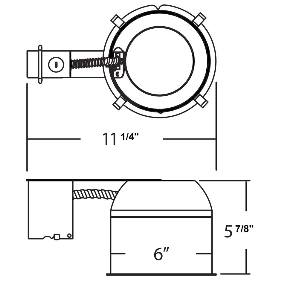 This 6 in. Non-IC rated housing is suitable for new construction in residential and commercial applications and requires 3" spacing from insulation. Integral thermal guards protect against improper lamping and misuse of insulation materials with lamp wattage ratings and apertures based off trim selection. The housing adjusts from 1/2" to 1 1/2" to accommodate ceiling thickness and its 5 3/4" height allows it to be used in 2" x 6" joist construction.