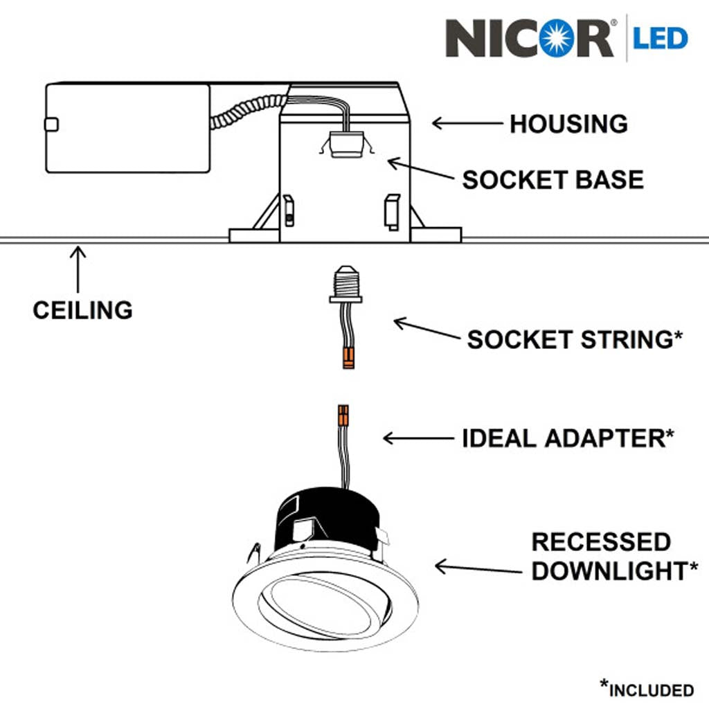 The NICOR DLG4 is the perfect LED Downlight solution for directional accent lighting. This 4-in Recessed LED Downlight is designed to fit 4-in recessed housings. The DLG4 allows you to light up areas where a standard recessed downlight simply cannot. With a 360rotation and 35tilt range of motion, the twist-and-turn design allows for fine adjustment of the gimbal position. The durable steel constructed DLG4 is dimmable (down to 10 percent) with standard LED dimmers and features high performance LED's to produce a Color Rendering Index (CRI) rating of 95 with an astonishing R9 value of over 50! This means your reds will be redder-in and your blues will be bluer-in no matter the color temperature. The DLG4 includes a Medium base (Edison) and an Ideal Quick-Connect adapter to make installation a breeze. On top of everything, the DLG4 is Energy Star rated, Title 24 compliant, and Damp-Location rated. Available in White and Oil-Rubbed Bronze in 2700K, 3000K, and 4000K color temperatures. The DLG4 is protected by and industry best 5-Year Limited Warranty.