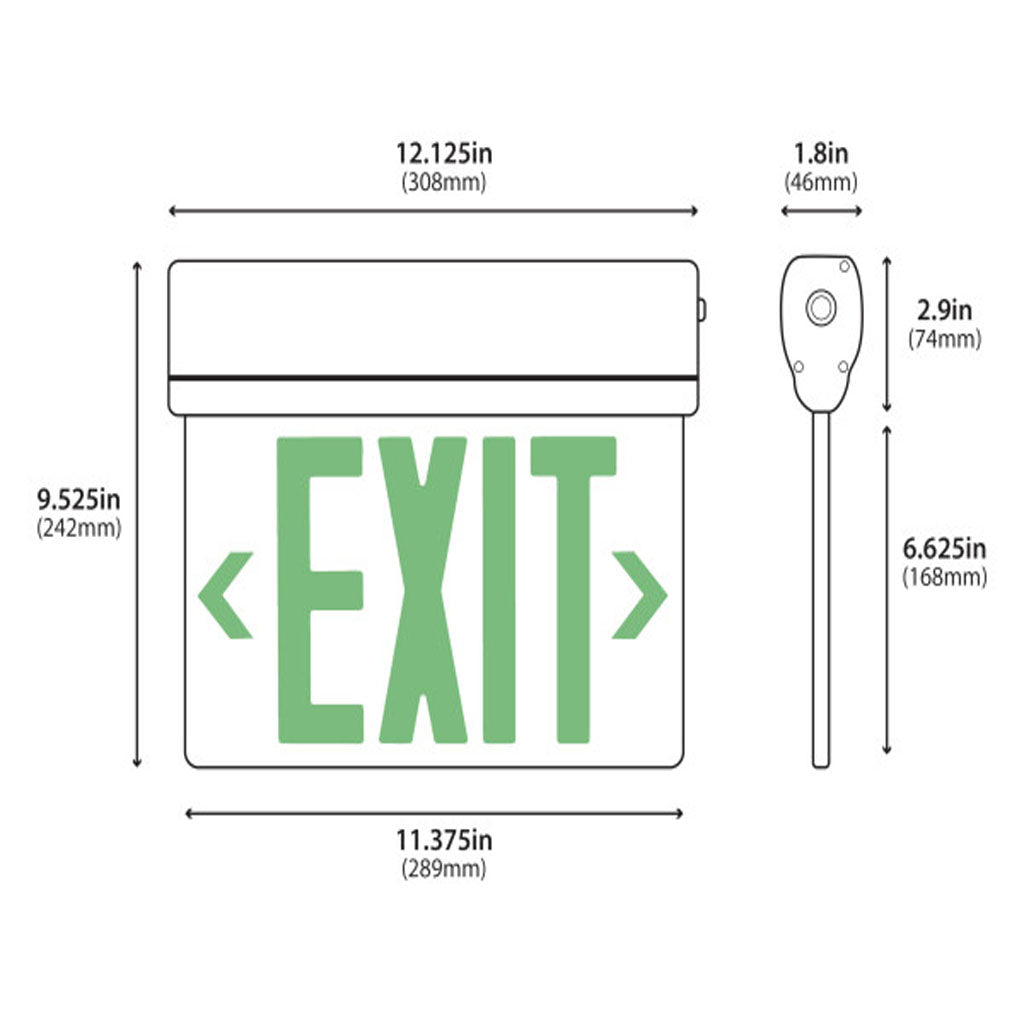 The EXL2-20 Series LED Edge-Lit Exit Sign features a contemporary design, built with dependability in mind. The sign is constructed using impact-resistant (mirrored) acrylic in a double-sided configuration. Bright LEDs illuminate the exit sign with exceptional light distribution and quality. The thin, edge-lit design saves space and reduces weight, making installation a breeze (considering it is usually done on a ladder). The EXL2-20 can be mounted from the top or end of the base. The adjustable base rotates 90for easy installation on any surface. The EXL2 features an integrated nickel-cadmium battery to provide 90-minute emergency run-time if the power gets cut. Directional chevron arrows are included. Available in red or green lettering.