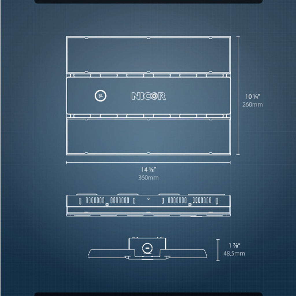 The HML1 is the newest addition to NICOR high bay product family. With it is slim 10x14-in footprint (on smaller wattages), the HML1 offers the high performance of a full-size fixture in a compact package. Available in 4000K & 5000K color temperatures with a variety of wattage and aisle distribution options, making it the ideal solution to replace traditional fluorescent fixtures. The HML1 also features a sensor socket option, allowing for field installation of motion sensor accessories adding to its versatility. The DLC 5.1 Premium fixture is equipped with built in 0-10V Dimming (full-range) and is Damp-Location Rated. Included is a V-Hook and Chain mounting system for easy installation. With its durable single-piece cast aluminum design, the HML1 is perfect for rugged applications like warehouses, gymnasiums, and other industrial or commercial spaces.