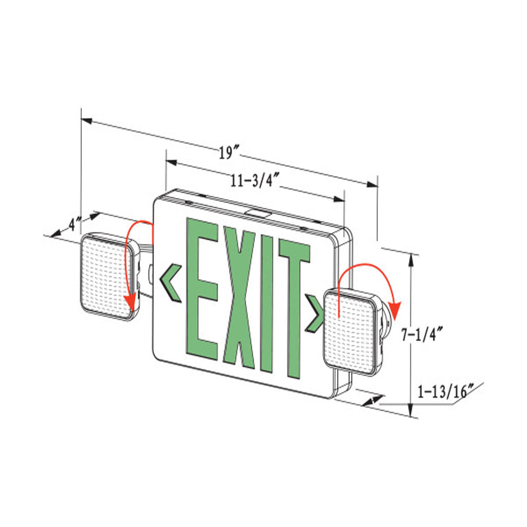 The NICOR ECL3 Series Remote Capable, Self-Diagnostic, LED Emergency Exit Sign Combo with Battery Backup Lighting features a low-profile design with the latest in emergency lighting technology. The self-diagnostic function automatically tests and reports on the status of the fixture to satisfy NFPA safety requirements. A redesigned housing keeps the fixture lightweight and very easy to install with the EZ Quick-Connect mounting plate. The injection-molded thermoplastic housing is flame rated (UL-94 5VA) for added safety. An integrated Nickel-Cadmium battery provides 90-minutes of emergency run-time that kicks on if the power goes out. Two emergency LED heads on each side are removeable and adjustable for increased visibility when it is needed most. The ECL3 is available with red or green lettering and includes an additional faceplate for the backside and removable directional arrows. Protected by NICOR 1-Year Limited Warranty.