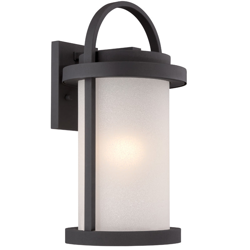 Nuvo 9 inch Willis LED Outdoor Wall Black Light Pendant Antique White Glass. Deep rich Textured Black is accented by Antique White glass in this complete product grouping which offers a fixture for every application.