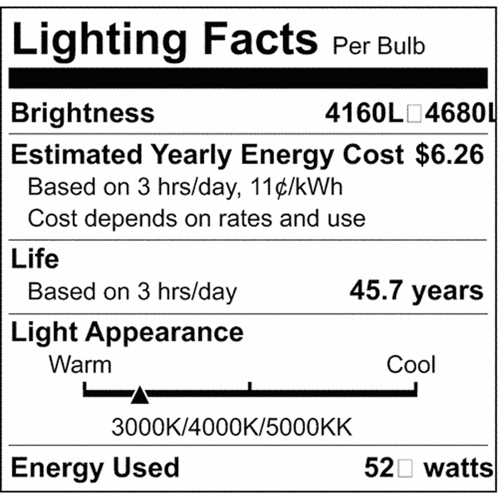 - Lumen Output: 4160L/4680L/4420L, Rated Hours: 50,000 hrs