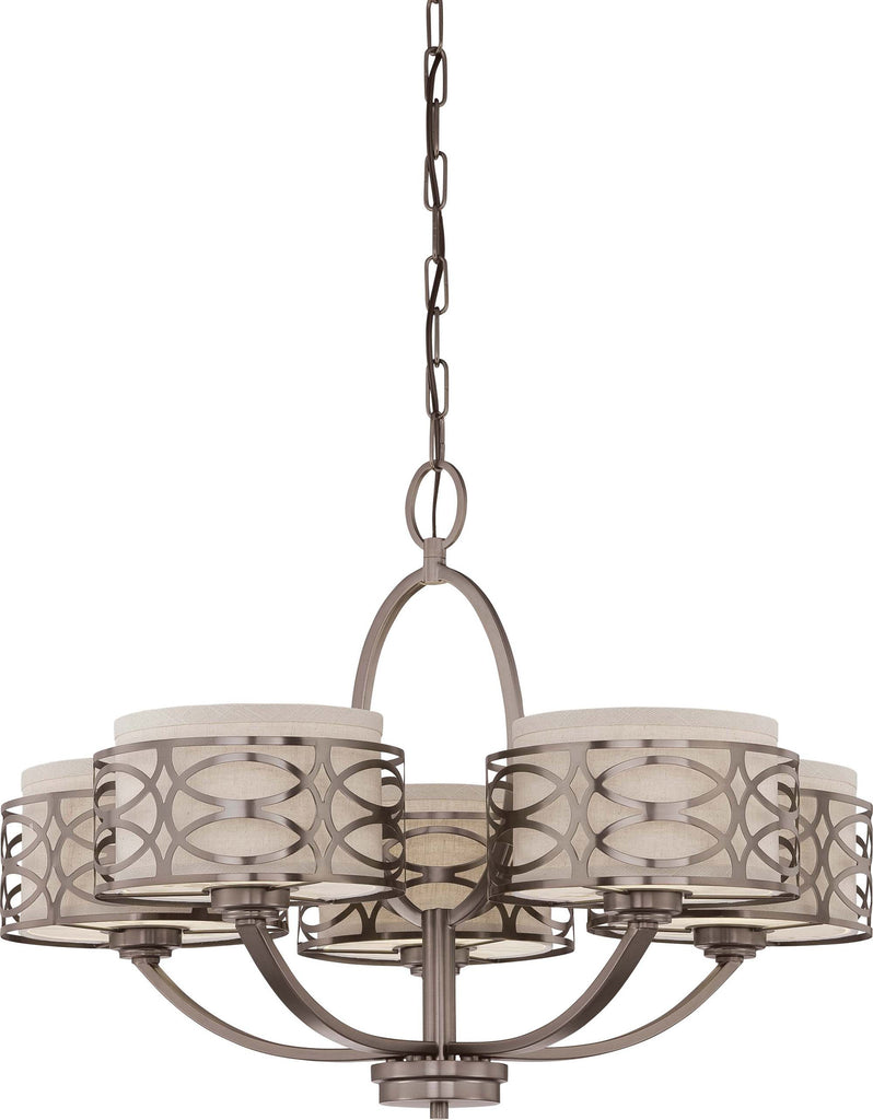 Nuvo Harlow - 5 Light Chandelier w/ Khaki Fabric Shades